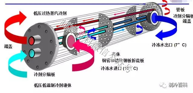 (3)冷媒水流量不足或蒸發器堵塞:換熱不良造成蒸發溫度低,吸氣溫度也